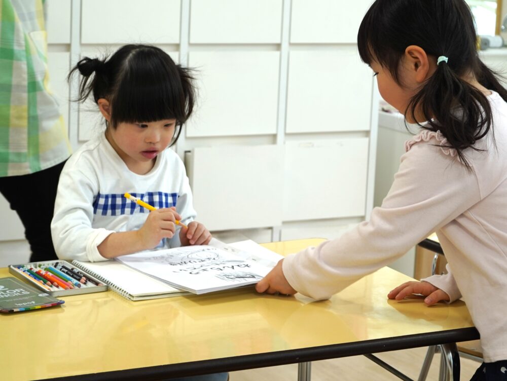 姿勢の保持や鉛筆の持ち方に難しさを感じるお子さんには、隣接する**児童発達支援施設の作業療法士(OT)**が専門的な視点でアドバイスを行います。一人ひとりの特性に合わせ、「無理なく、前向きに」取り組める環境を整えています。